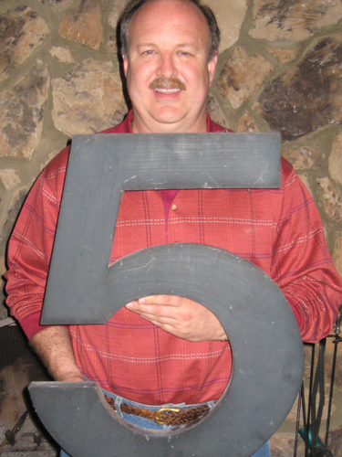 The big no. 5 sign is sitting right now next to the fireplace in my living room. I need to figure out where, exactly, to put it.