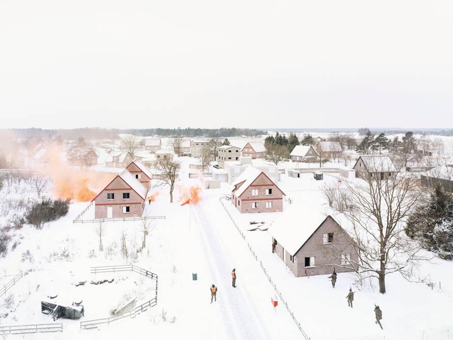 Jeroen Hofman: The training grounds in my project are also secret worlds—with one essential difference. These are safe enclosed playgrounds. Training here is play, theater in a hidden world. “For real,” but not really—not yet, and hopefully never. These areas are often huge in scale. The largest one in our country is Marnehuizen. It’s a complete military training town: houses, a bank, a supermarket, town hall, train station. It even has a sewer system. Everything there is fully functional. If you have ever played with LEGO you will immediately notice the similarity.