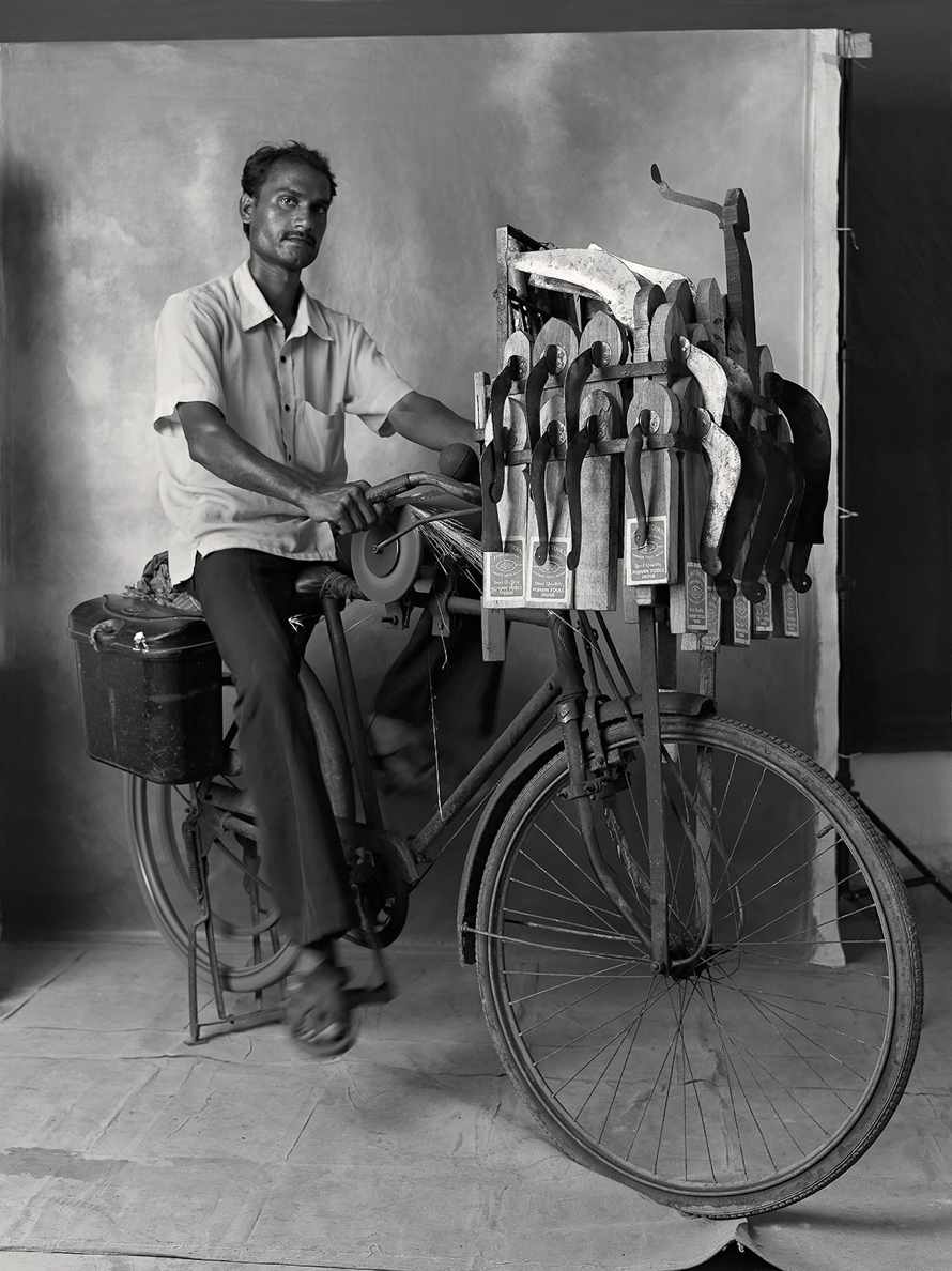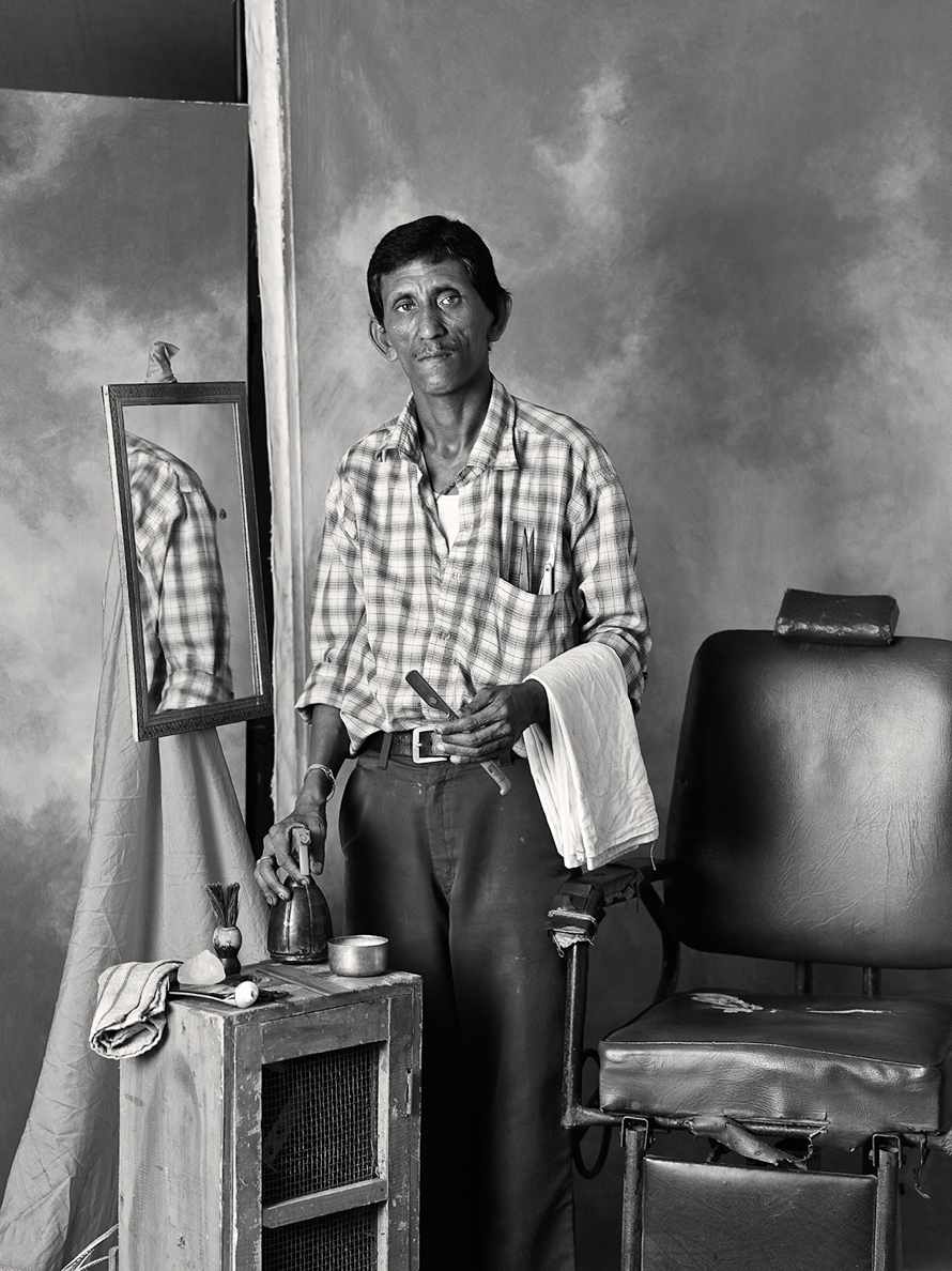 Ear cleaners, knife grinders, street-side barbers—portraits of Indian tradesmen who maintain caste-prescribed professions.