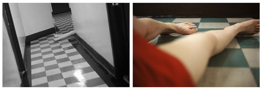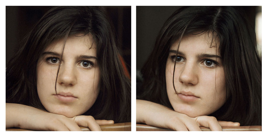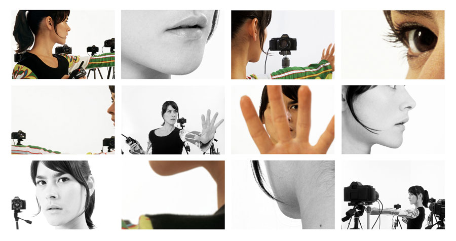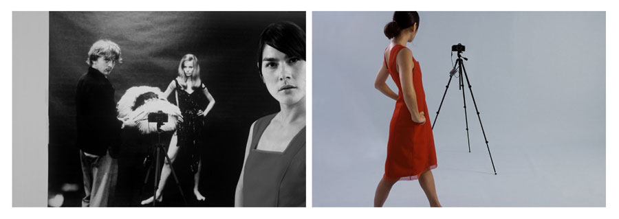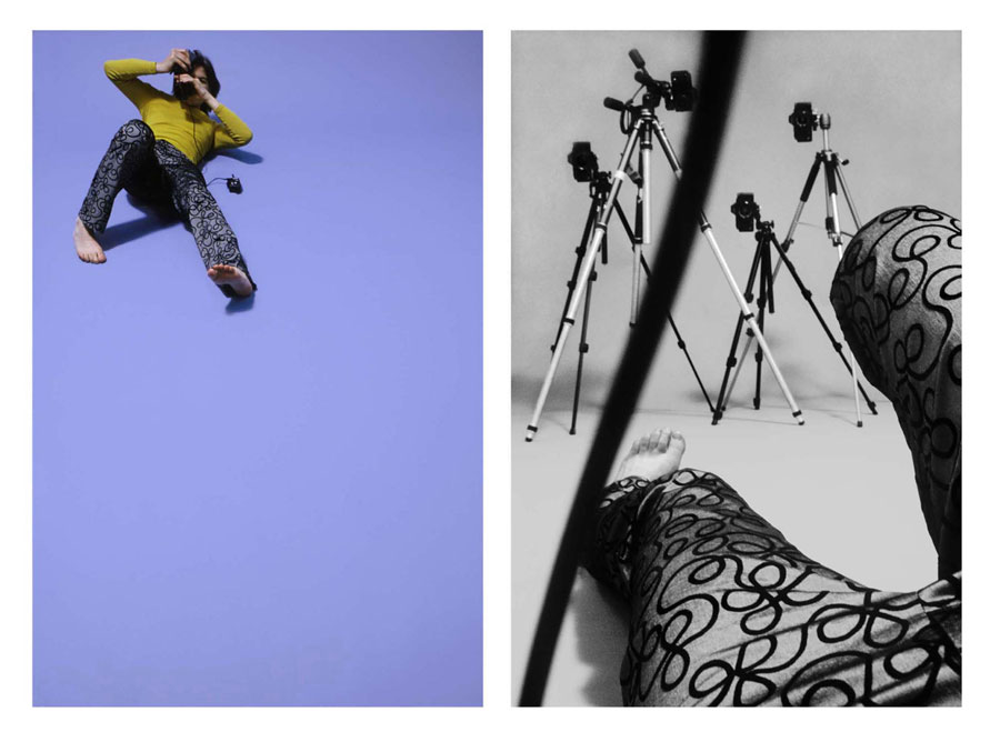 When I photograph there are always at least two and sometimes as many as 12 cameras involved. There is no way for me to look through the viewfinder during shooting, since all cameras release at the same time. Therefore, I have to set up the cameras and instruct the models very deliberately to get every camera to frame the scene in the right way. Needless to say, there is “accidentiality” involved, which I enjoy working with. The results are never quite as planned, but usually there’s something I can work with. I am not interested in manipulating images on the computer. My work is based on an investigation of the conditions of photography and its relationship to reality. Continue reading ↓
