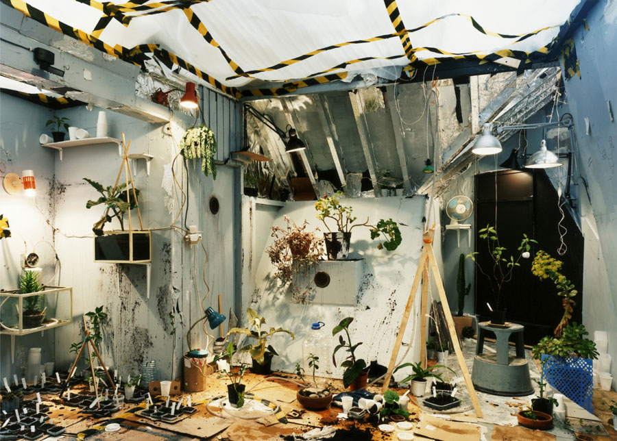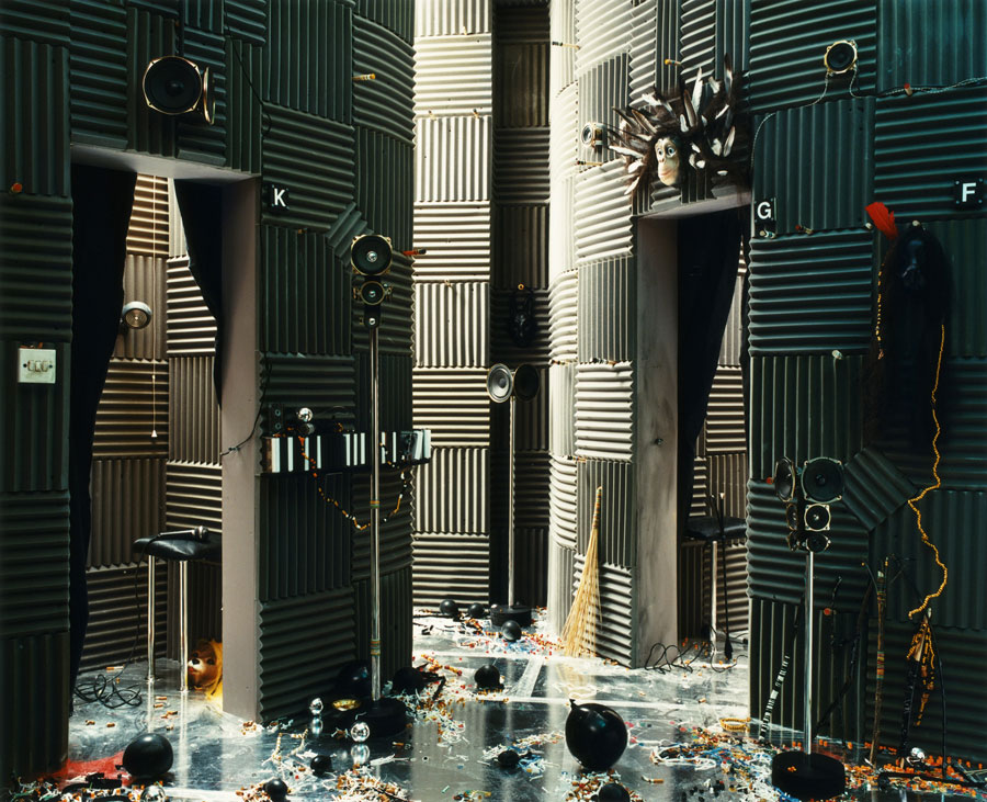 It would be interesting to interview British artist Anne Hardy’s cleaning lady. She turns her studio into spaces—worlds without people, but apparently heavily and recently used.