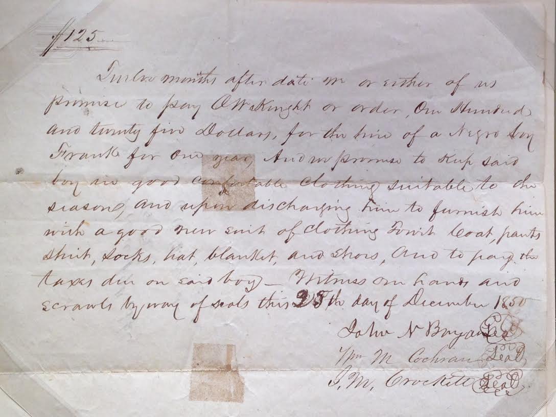 On display in the Old Red Museum, across the street from where Bryan’s original cabin is preserved, one finds a yellowed piece of parchment on which a contract was written. According to the plaque on the display case, “For $125 and a new suit of clothes, John Neely Bryan rented the services of a slave from A. W. Knight on Christmas Day 1850.” The contract itself states the payment was to be made “for the hire of a negro boy Frank for one year.” So there it is. My heritage both materially supported and benefited from slavery. My blood is tainted by this injustice. My heritage is repulsive.