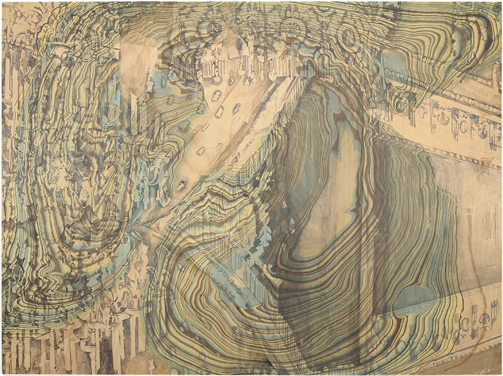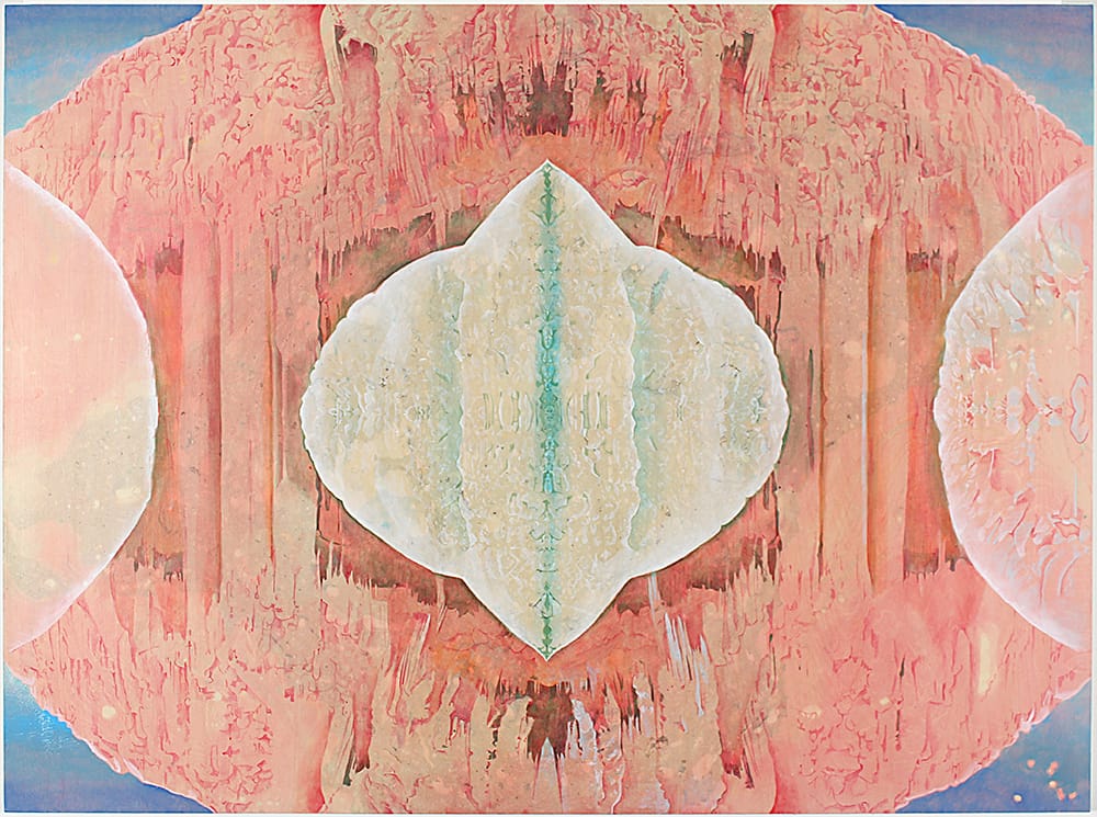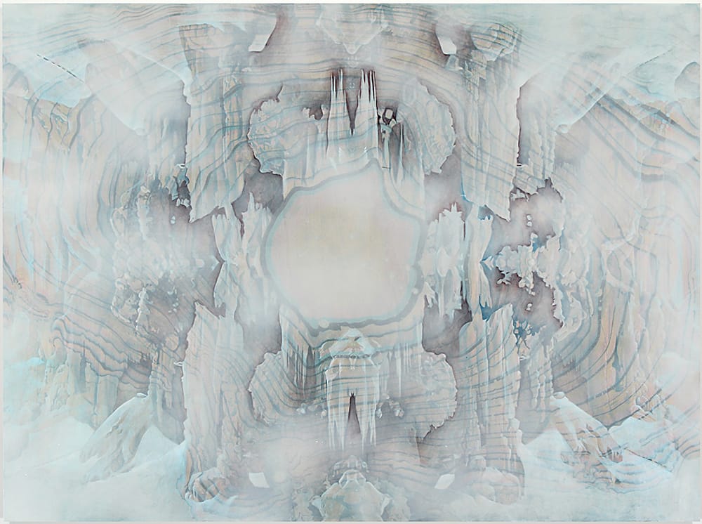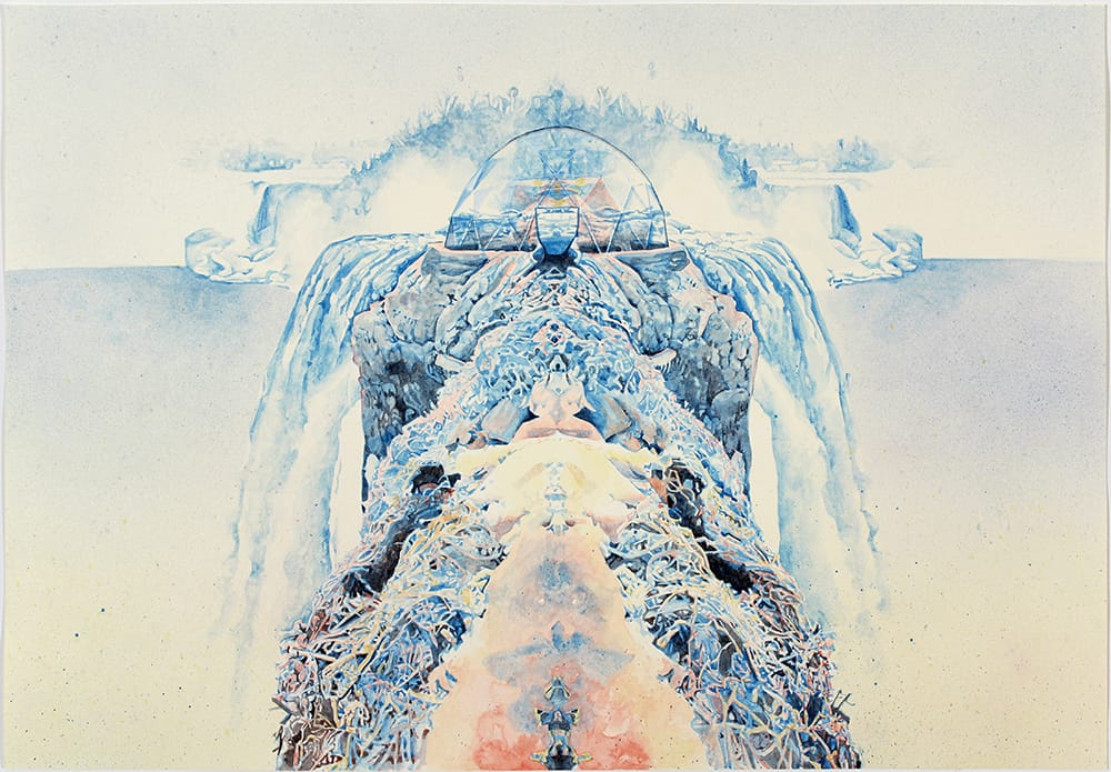 RB: Once I was at a museum reception and I became quite ill and passed out, ended up in a hospital. The art world is a rarified space, but biology and mortality intrude on whatever intellectual aims we’re pursuing. There’s an awareness that at some points you lose control—that’s an underlying current in my work. The imaginary landmasses I’ve painted, like islands surrounded by waterfalls, are constructing a place of safety. The implausibility of these spaces in the paintings reflects the fact that you can’t ever be totally safe.