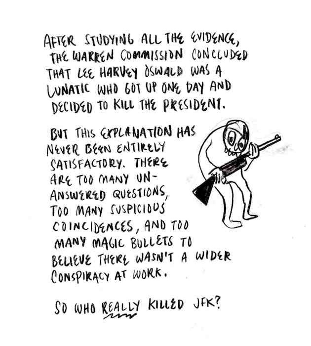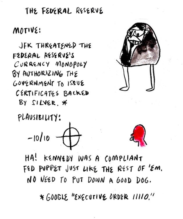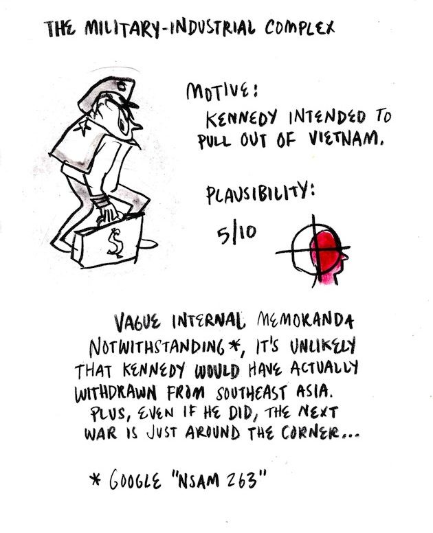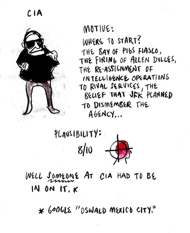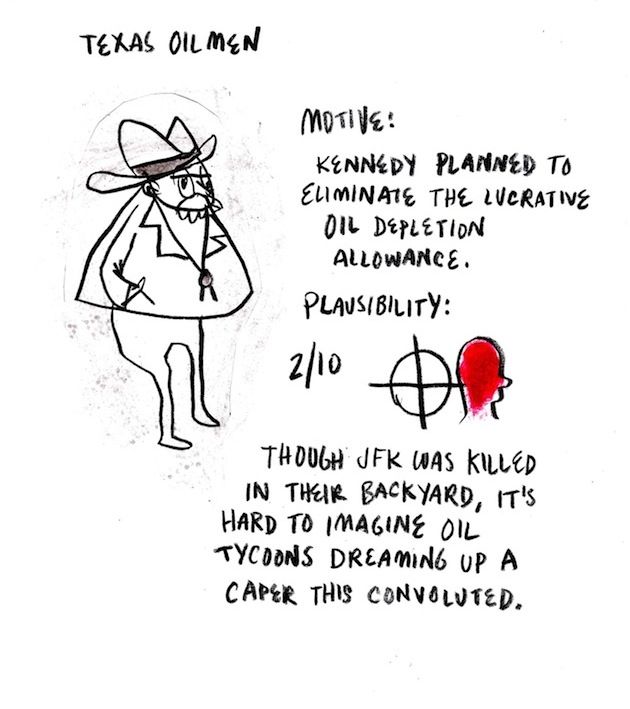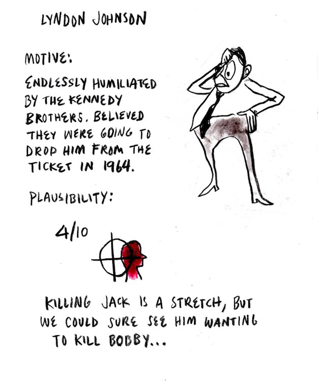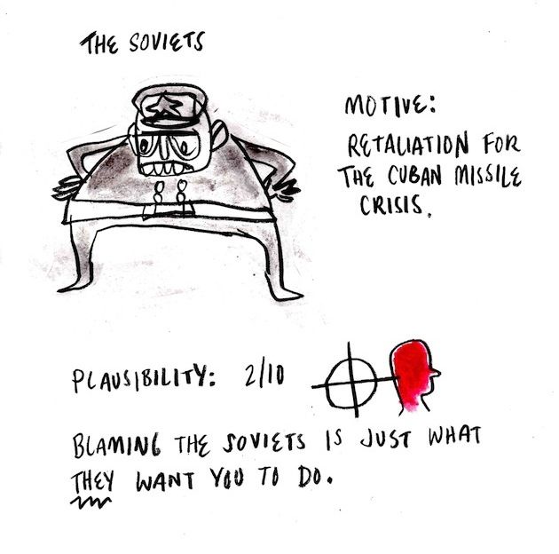 All the President’s Killers By Mike Duncan, Jason Novak in Explainers — 20 Nov 2013 Fifty years after Dallas, an illustrated guide to every person, plot, and nefarious organization ever accused of killing JFK. Special thanks to Rachel Sher for help with the collage elements.