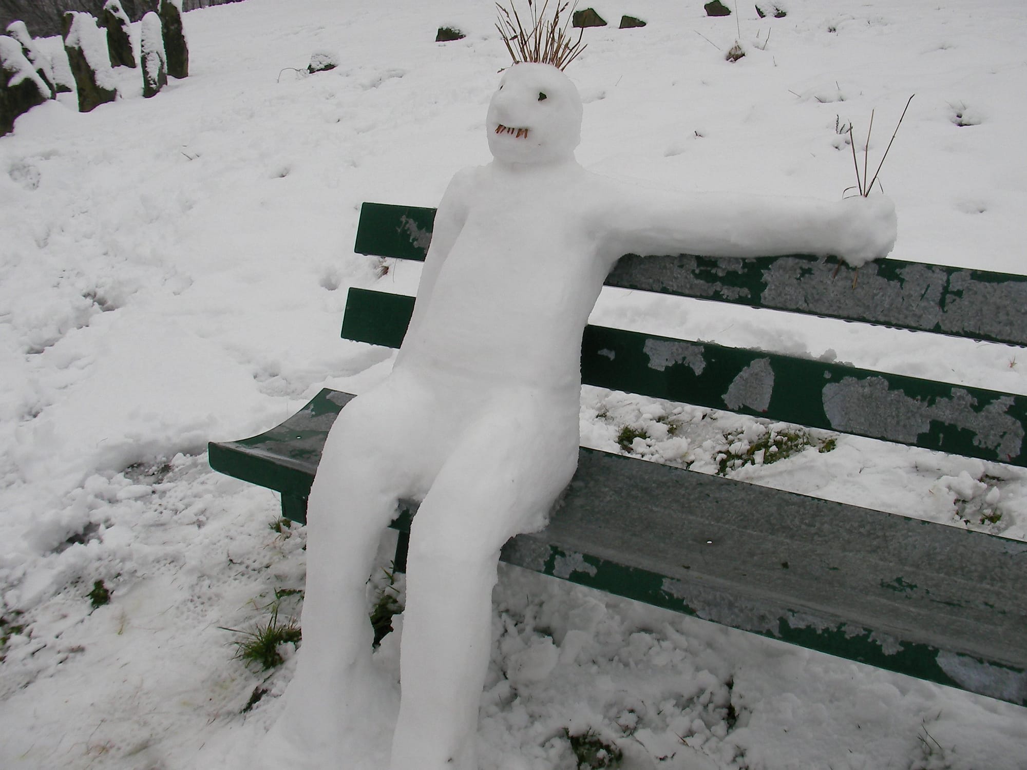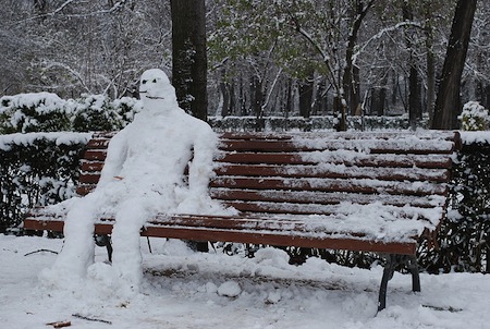 Suspect: Another park bench pervert. For God’s sake, just keep moving. Don’t sit. The bench is covered with snow anyway. Distinguishing physical characteristic: Unusually small carrot.