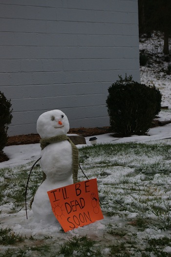 Suspect: Wanted for assault and battery. Known to keep packing snow on his frame long after it’s ceased looking good; probably pours water on himself at night. Totally ignores personal hygiene and is often covered with patches of dirt.
