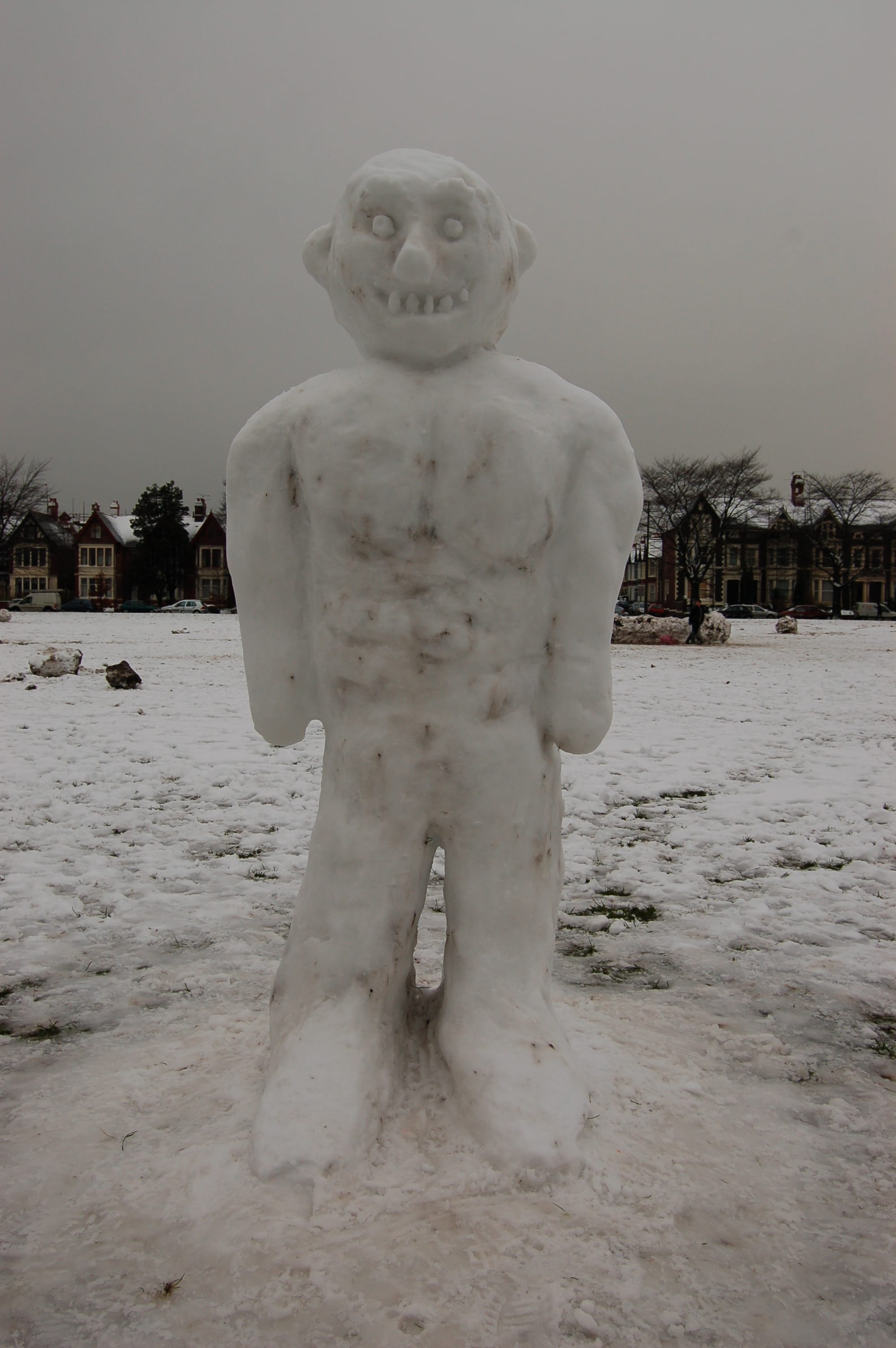 Suspect: Snow giant—possibly from another dimension—capable of destroying us all. Appears to be gentle. Kill on sight: flame-throwers, Molotov cocktails, blow dryers, anything at your disposal.