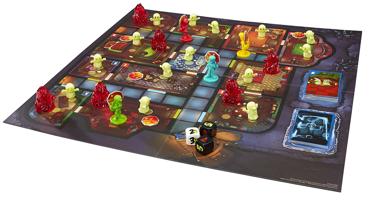 Here’s the thing with kids’ games: They’re dumb. Like, 97 percent of them, anyway. I mean The Game of Life accurately captures the pointlessness of real life, but beyond that there’s not much to recommend it. To be fair, it’s not easy to create a system that allows children and adults to compete on a level(ed) playing field, but also holds everyone’s interest. Thankfully, designer Brian Yu slices this gordian knot in twain with Ghost Fightin’ Treasure Hunters, a cooperative game where everyone plays with the common goal of looting a haunted house. Players charge down hallways and through doors, searching for the eight jewels hidden within, all while more and more ghosts pop up in the various rooms. On the one hand you can ignore the ghosts, but when they hit critical mass you collectively lose the game; on the other, bustin’ makes you feel good, but at best will only slow the infestation. Striking a balance between ghost fightin’ and treasure hunting thus becomes the main collaborative element of the game, and makes for some lively discussions between kids and adults.