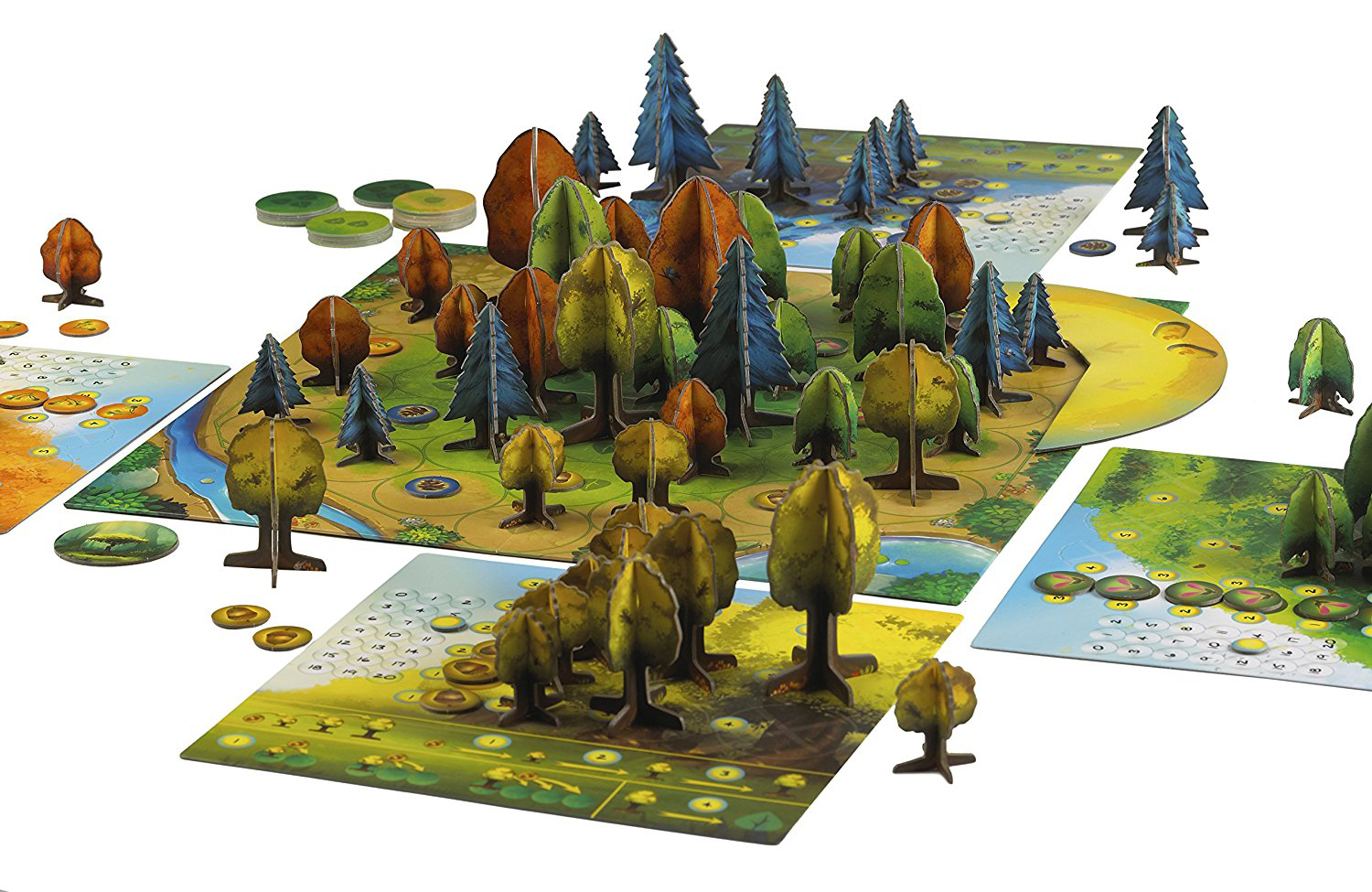 “Abstract” and “well-themed” are typically antonyms when it comes to board game descriptors, but both apply to the gorgeous Photosynthesis. Players sow seeds onto the communal board, and then shephard their species from seedling to sapling to tree. The bigger the tree, the more Light Points (the game’s currency) it harnesses from the sun, and the longer the shadow it casts, starving the smaller trees behind it. Players can remove their largest trees from the board to score points, but doing so reduces their income and allows nearby trees to thrive. While decidedly abstract (there is no luck in the game, and skillful play centers around strategic positioning), the rules flow so intuitively from the premise that you will feel like a master arborist, or Gaia Herself.