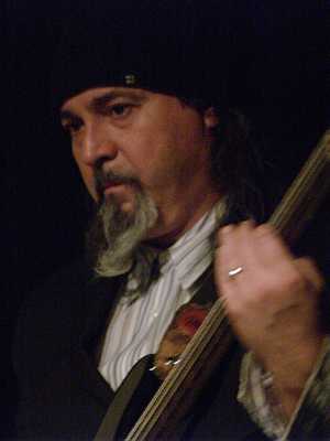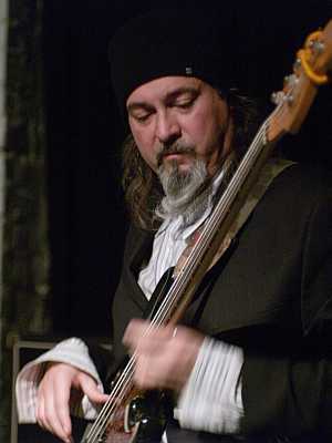 At the beginning of the first set, behind his drum kit, Licata establishes a hypnotic foundation of breakbeats as Submerged applies a mixture of jazzy samples and ambient loops—a complex juxtaposition of cut-up rhythms and rapid-fire drumming timed so perfectly that someone listening to an audio recording would swear that Licata’s beats were programmed. Then Laswell plugs in with a series of silky, effortless runs up and down the fretboard at frequencies so low that his bass lines aren’t merely heard but are also felt in intense, gut-rumbling waves. Surrounded by pedals and effects boxes, Laswell tirelessly experiments with filters, reverberation techniques, and styles so varied they resemble everything from free-form jazz guitar to crunchy metal-chord progressions.