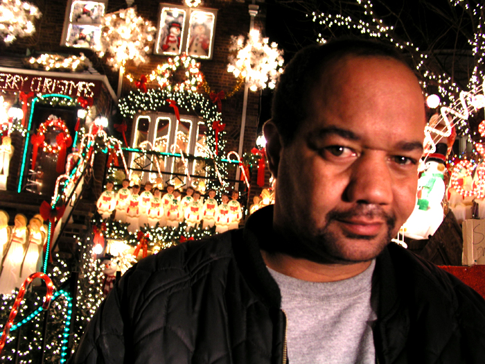 Sidney, one such contractor, explained he performs odd jobs year-round for one of the Dyker families, but Christmas is his big season. He directed my attention to a Santa Claus throne he had assembled from scrap lumber and red Astroturf. Sidney told me the throne had been constructed quickly and suddenly, when it was discovered the original throne—designed for a sleeker, European St. Nick—was too small to accommodate the new Santa’s girth. Just a few feet away from the replacement throne sat the original, loosely covered in a plastic tarp, a grim reminder of leaner years.