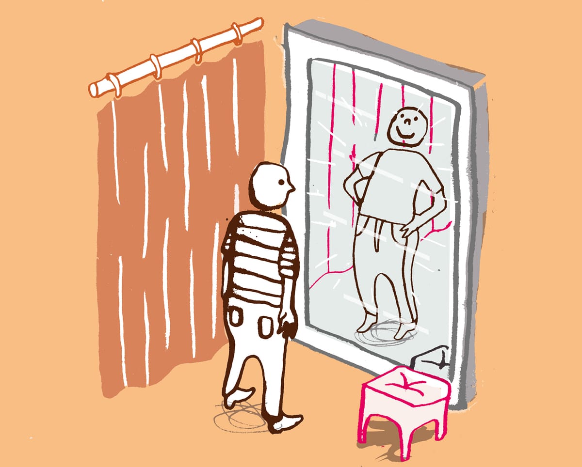 I took the jeans, went behind the curtain, and unfurled them with a crack. A flat, denim sheet waved in front of me. How was my three-dimensional body supposed to enter this two-dimensional plane? I spent the next seven minutes trying to solve that puzzle—squeezing, heaving, and jumping my way into the jeans. Finally, I had reached that point that anyone can recognize, the moment when both legs are through and the fly is gaping, stretched to the limit. It is a clarion moment: These jeans don’t fit.