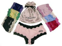 I must say, it’s tough to find good day-of-the-week undies, and these ($110 from Amazon) are brilliant. The set consists of seven little pairs of tap pants wrapped in a satin bag. They’re playful, sexy, and a little bit kitschy, just like her.