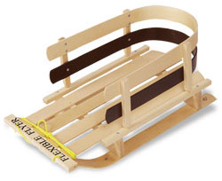 Baby’s first sleigh. The wooden Flexible Flyer ($100 from KB Toys) has steam-bent skis, steel runners, a back rest, and a tow rope. Best of all, it comes assembled, so you won’t be up until 4 a.m. banging your head against the shipping crate.