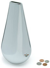 Karim Rashid designed this sleek, ceramic piggy bank for grownups ($18 from MoMAstore). It has a slot at the top for coins and a rubber stopper in the bottom for easy access when he needs meter money. Beats the heck out of an empty pickle jar.
