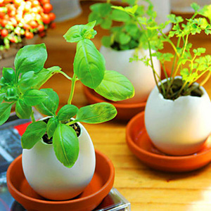 These ceramic planters ($20 from Sprout Home) look and feel like giant eggs. They come whole, and she cracks them open to sow the included seeds. Once the plants get big enough, the entire egg can be transferred to the garden. Also comes in a smaller size that looks more like a chicken egg.