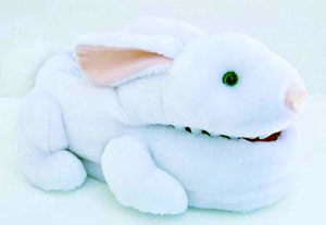 Bunny slippers! Ferocious bunny slippers ($27.95 from Sci-Fi Genre). I’ve been looking for a pair of bunny slippers for years, but I never imagined that I’d find a carnivorous set.