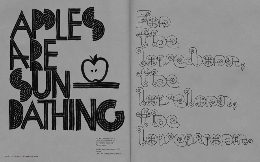 I can see how you might look at the design world and think that these people do not know how to draw. But there is a large segment in that world full of very skilled artisans. This book features 55 of them. These typographers are creating letterforms using traditional materials like watercolors, or chalk and paint, or more experimental materials like leaves fallen from a tree. The craft is an important aspect of typography, but so is process and concept just as it would be for any other “artist.”