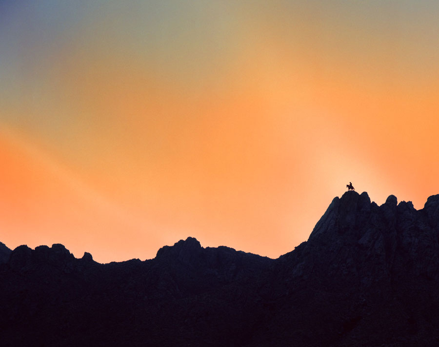 In many of the pictures, there’s an affection for wide-open spaces and grandeur, even myths: big skies, flying cars, floating blimps, cowboys. Do you find photography well suited for capturing big ideas?