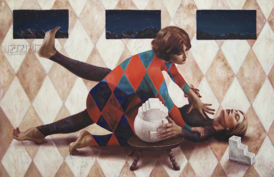 Having a narrative as a guide helps me come up with ideas for imagery, but it’s not important to me that a story be apparent to the viewer. Once I start painting, the narrative goes completely out of my mind and I’m just trying to make a good painting on a formal level.