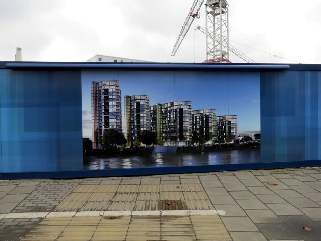 Despite Britain’s recession being slowly cranked over the drop of what is now being a called a “triple dip” recession—all the plunges without the roller-coaster thrills—developers aren’t having any trouble selling large swathes of these upscale apartments “off plan.” The day before I did this walk the headline in London’s Evening Standard read “Battersea bonanza as £600m flats go in 4 days.” Someone is buying into this. Three years before they’ll be able to move in—and this to a site with nearly three decades of false starts and abandoned plans—investors queued up to buy the bulk of 800 units released to the market. The key word is “investors.”