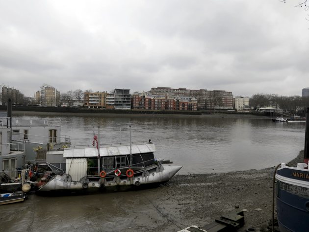 The new developments all promise a similar thing—to open up this stretch of the Thames to the city, providing a new, broad path running along the river bank all the way from well before Battersea to Waterloo and beyond. The Thames’s choleric days are long behind it, as is its role as a giant conduit for the capital’s effluent. But it’s January, and the banks are cold and exposed, empty and windswept. Parts of the path have been there for decades, but are now tucked away down a narrow passage between high wooden temporary hoardings. It leads down to a motley flotilla of houseboats, their moorings hidden behind a building site, their hulls listing in the mudflats revealed by low tide.