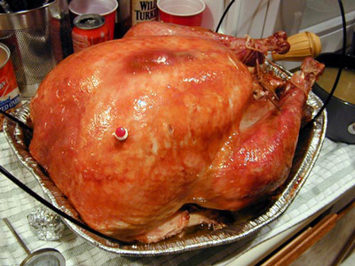 Depending on the size of your turkey, you’re going to need to start working on that bird five to seven hours before dinner is served. Below is a chart of turkey cooking times. Add between two and two and a half hours to the time specified for your turkey, and start the countdown from there. One hour will pad the beginning and one will be at the end, since the bird needs to stand, or “rest,” for about 30 to 45 minutes after it is done cooking and before it’s carved. Once you’ve outlined your Thursday schedule, go ahead and be wasteful, tossing out the leftovers, since you need to preserve your fridge space. Now take out the garbage. Finish by watching The OC, having a nightcap, and turning in early.