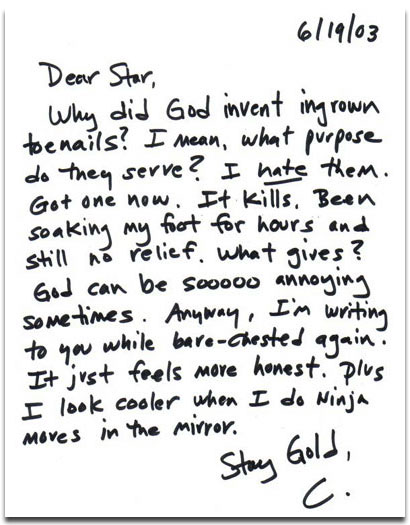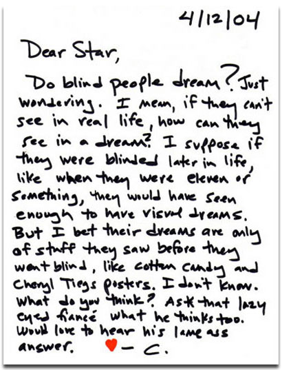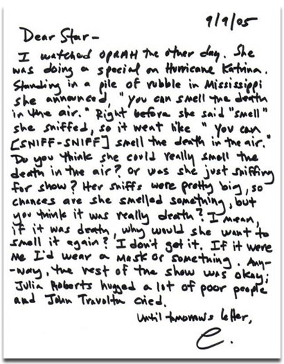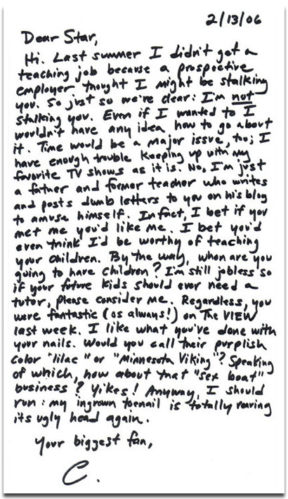 “Well, my letters to Star Jones are silly and mindless,” I said, trying to chuckle the issue away.