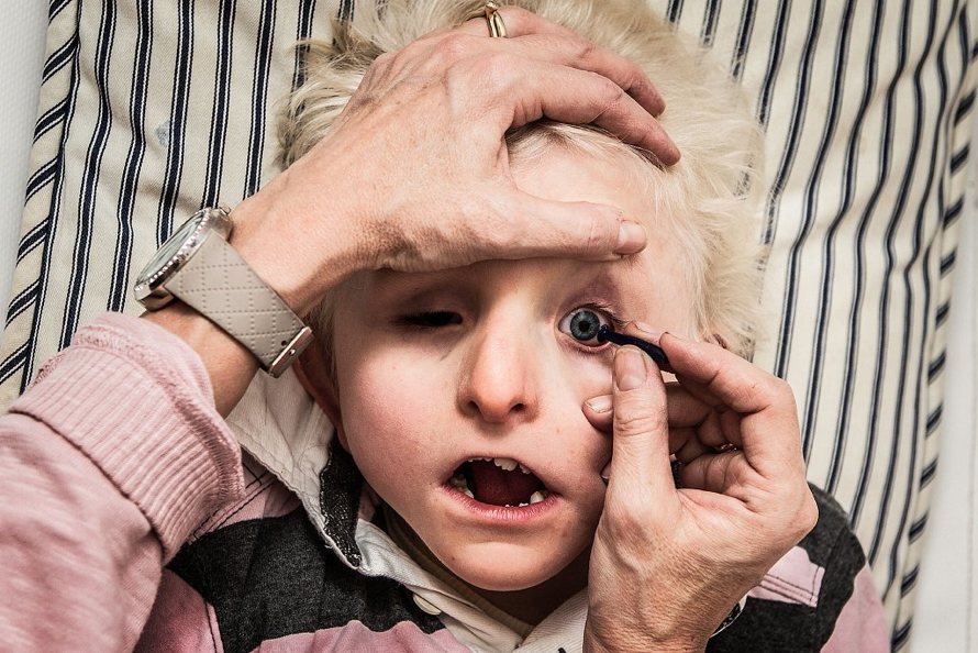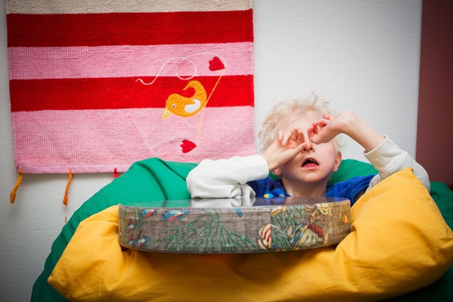 Jon is a multi-handicapped 11-year-old boy. He was born without eyes and has many disabilities. He needs full care 24/7. Jon eats intravenously and is on a lot of medication. He can’t talk or communicate. He doesn’t understand words and he doesn’t have the ability to learn. Also, he can’t walk or use his body. Communication therefore comes from tone of voice and touching. He has a number of different wheelchairs that he uses for different activities. Jon loves listening to fairytales and children songs, and really likes it when his mother sings or telling him stories. The family has a very strong and touching bond. There is so much about this rare little boy; I am going to continue to follow him and his family.
