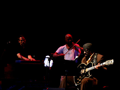 For nearly two hours Ulmer dexterously wove earthy, expressive leads through the other musicians’ robust rhythmic and harmonic textures, accentuating the inimitable tension and resolution that defines his solos. When someone shouted “Blood Ulmer for President!” the band answered with a rollicking rendition of Willie Dixon’s “Dead Presidents,” a song that, along with three other Dixon covers, showcased Ulmer’s searing vocals. Throughout the performance, Reid diligently provided steady rhythmic support on every number and backing vocals on Dixon’s “I Love the Life I Live (I Live the Life I Love).” That night, Rich Forum epitomized what live music is all about—a mutual elation and joy shared by both the artists and the spectators.