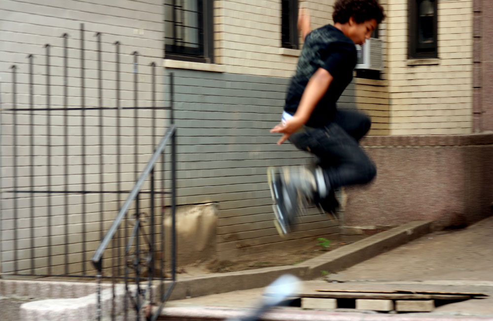 From Jerome Avenue, Kingsbridge Road climbs east to the sepia-toned former grandeur of the Grand Concourse, like a dime-store-nail-salon-Dunkin-Donut valley in a terraced residential landscape. On the side streets, stolid clapboard houses hold their own against the quiet recessed entryways of multi-story apartments. The graffiti is scrubbed soft. Boys put away their homemade skate ramps at dusk and greet elderly neighbors with deference.