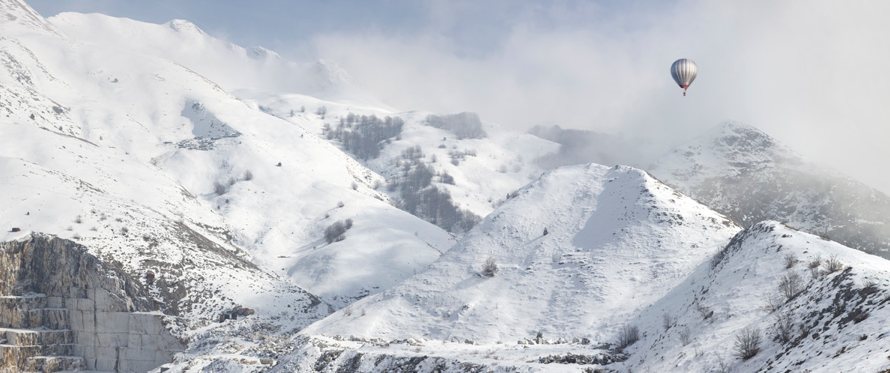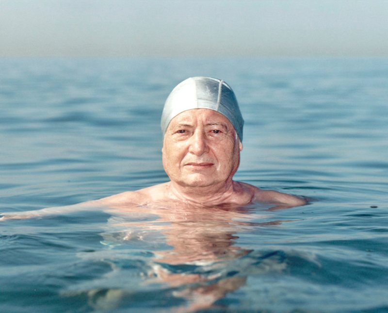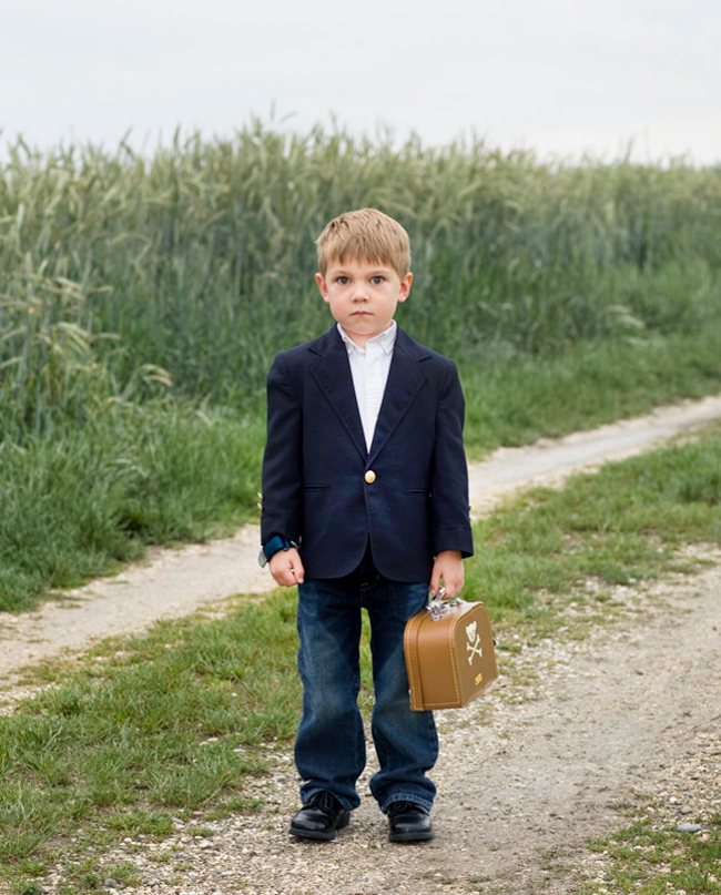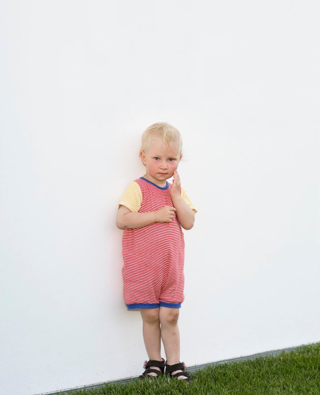 Portraits of jets at play in the Italian Alps, children posed like adults, and adults bobbing in the sea. Each picture toys with where our eyes are drawn and unsettles our experience.