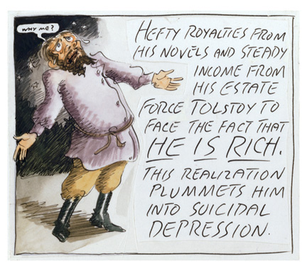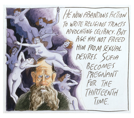 An interview with artist Edward Sorel and a gallery of images (featuring the story of Tolstoy’s odd life) from his new book of illustrated—and unflattering—biographies of canonized authors.