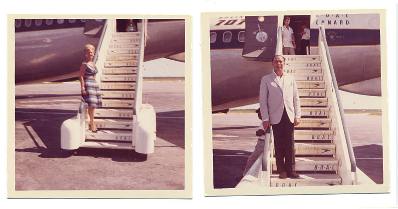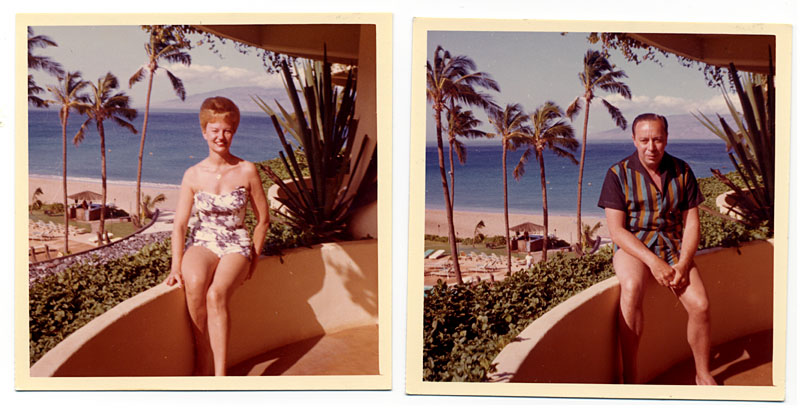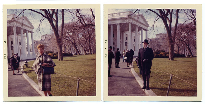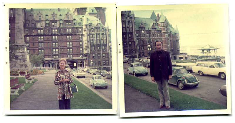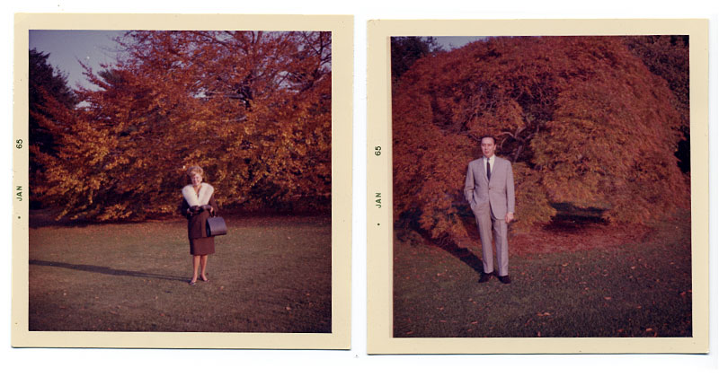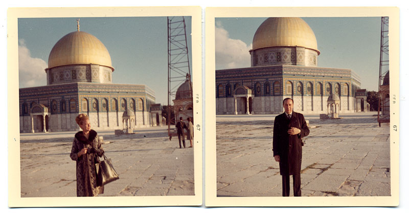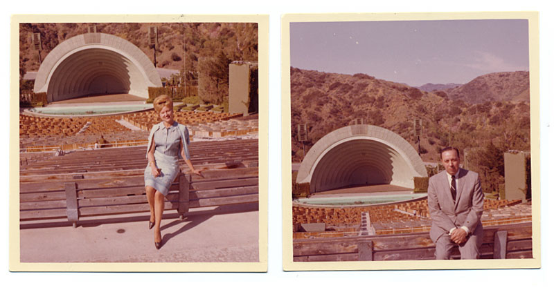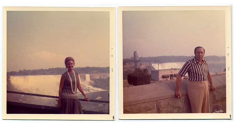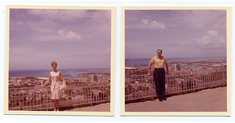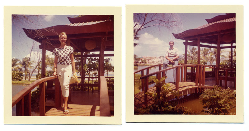 Back at home, I started organizing the photos—most of them had written information on the back. The first photo is from 1953, and the last one from 1977. In most of them are a man and a woman, a couple who took photos of themselves for more than 20 years. The woman was probably the one writing on the back as the man isn’t present before 1958, and we see her with another man in 1956. This couple traveled a lot; there are photos from lots places in the U.S. and abroad; they made a habit of capturing each other in front of famous places and views.