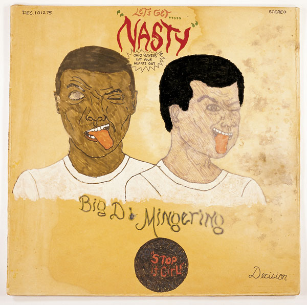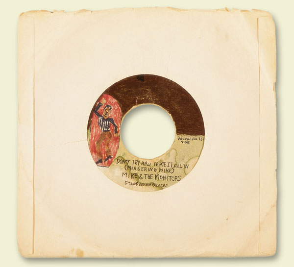 The Case of the Outside (Soul Superstar) Artist is an odd one: A record collector who is a DJ by night and a private eye by day stumbles across a rare batch of records at a flea market. Recorded by an unknown singer, Mingering Mike, the records are exquisite in realistic-seeming details: gatefolds, label logos, complete lyrics, artwork. They are also entirely hand-made, with painted sleeves, interiors, and actual platters made out of cardboard. Intrigued, the DJ-detective buys the lot and begins his search for Mingering Mike himself, eventually finding a man who never intended to sell his very personal quasi-recordings—they only showed up at the flea market because he was behind payments on his storage unit.