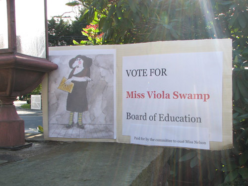 A month after we asked our readers to create and photograph political campaign signs of their own making, here are our favorites. We announce the winners of our Encyclopedia Brown for District Attorney contest.