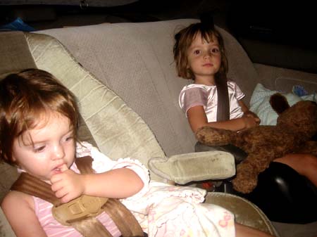 Annou meets us. We eat all of the ice cream in the freezer and leave shortly before midnight: Mom, Dad, Annou, my wife Sarah, Louise and our other daughter June, Penny (the dog), and Delilah (the cat). We caravan in two cars. Ours is very full.