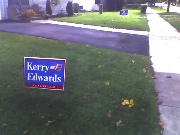 Am I worried? I'm a novelist, which is the opposite of a "secure, steady job." My wife works in the financial industry. The last few weeks I've pretty much walked around with my face twisted into a silent, Munchian scream. I look like Cameron when he got lockjaw in the final reel of Ferris Bueller's Day Off. Or I would if I didn't have a five-year-old and a two-year-old who couldn't care less about the financial crisis or dirty politics. They don't know anything about crazy Sarah Palin or GDP or the Dow Jones Average or the credit crunch. You know what makes them happy? Stickers. If Charlie Gibson tells them there's a sticker crunch you'll see some depression, let me tell you. As for crazy McCain/Palin voters, compare your video to this one. I think those are the same people. I'm confident that Judas Priest fans have yet to swing an election one way or the other. The odds that any of those assholes will remember to vote seem remote to me. That's not to say I'm not worried. The anxiety we all feel right now is the anxiety of the unknown. We don't know who will win this election. We don't know how bad the economic crisis might be. We don't know who will be next to go down with a knee injury on either the Bears defense or Dancing With the Stars. The other day I was driving home after dropping my son off at school and I spotted this Kerry/Edwards sign in a yard right next door to an Obama sign. Since that day I've been obsessed with what it means. Is this a person who wants to vote Democratic but can't bring themselves to vote for a black man? Is it a smartass trying to tell America, after four more years of disaster, "I told you so." Or is it just an Obama voter who can't afford a new sign? I don't have any idea. It's the uncertainty that's giving me ulcers.