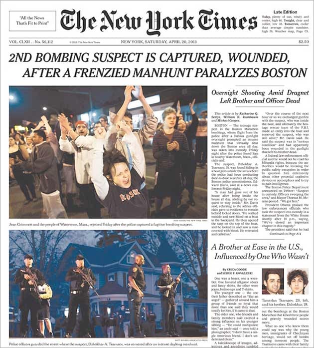The news media painted our pictures of Watertown, sure. But sources like Kitzenberg supplied the paint, reporters wielded their brushes, and no two images are identical. What we know about the Boston Marathon bombing—and, for that matter, any major news story—depends on careful collaborations between reporters and their sources, as well as our ability to evaluate them. And if reporters are compelled to find the “best obtainable version of the truth,” as Carl Bernstein put it, then sources frequently determine what’s obtainable.