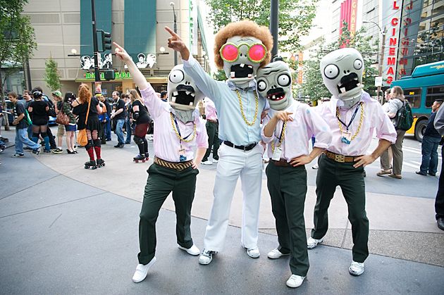 On Friday, Aug. 26, the first day of the convention, I park my car on Capitol Hill and hike into downtown Seattle, passing the event horizon of PAX well before reaching my destination. Ten blocks away I see people heading toward the epicenter with bright red three-day passes bouncing on lanyards. Five blocks away I see my first novelty T-shirt: an arrow pointing left over the words “I’m With the Flanking Bonus.” The three blocks surrounding the convention center are nothin’ but nerds, save for isolated pockets of citizens uneasily eyeing the zombies and darting into The Cheesecake Factory for refuge.