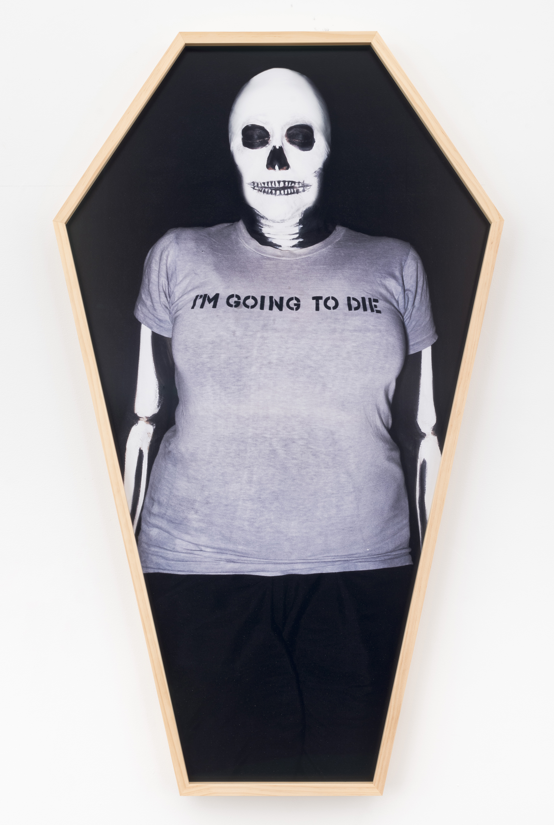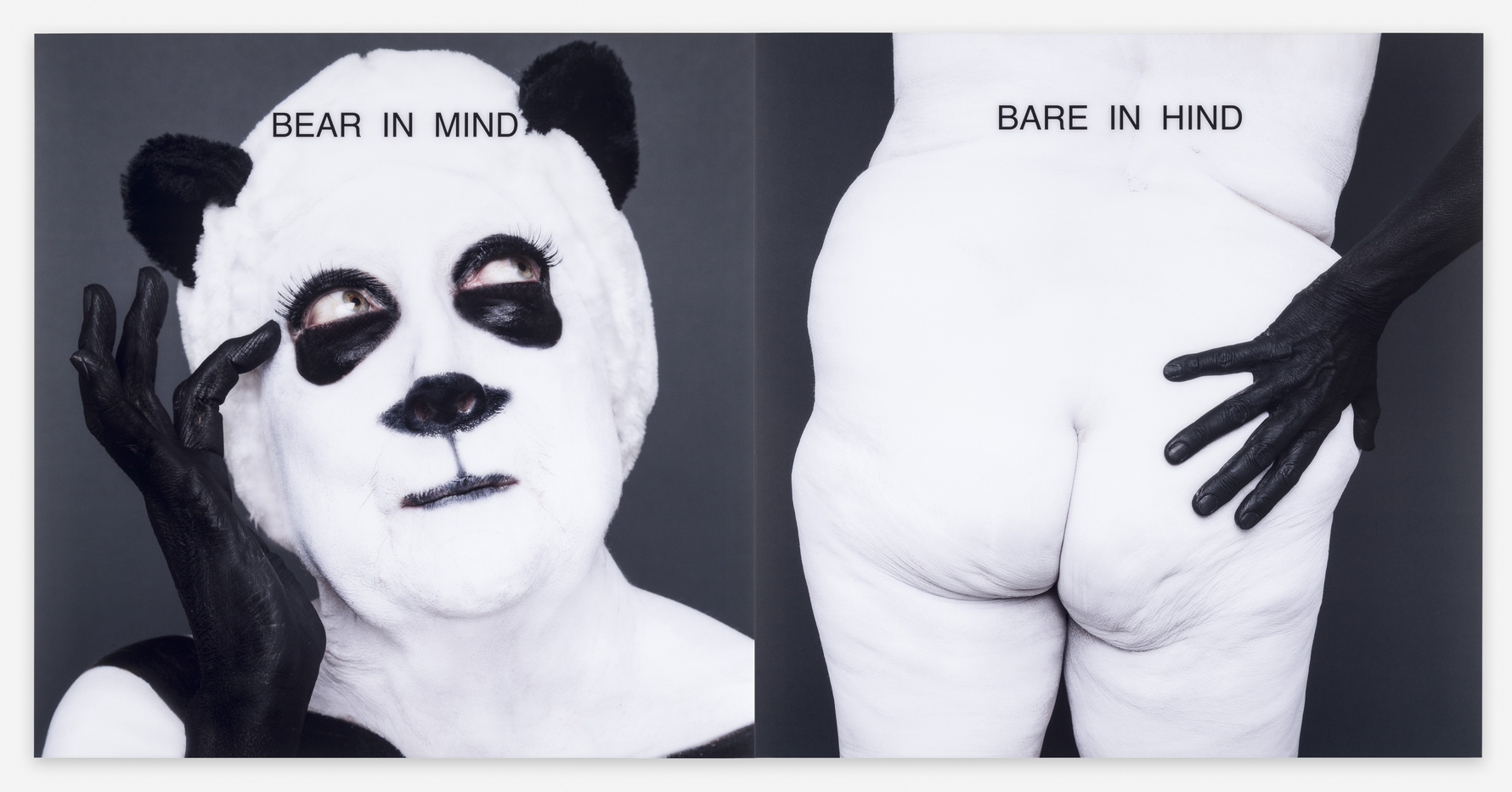 For this show, I’m having fun with frames. “Bear in Mind/Bare in Hind” has no frame, but it’s giant—it’s 48x48 inches. And each image has 1/16th of an inch of plexi-glass over it so that the photograph’s protected from handprints and passerbys’ elbows. I thought about each work and how I wanted each work to operate in relation to the audience and ended up framing them pretty differently. The one that’s an homage to Ad [Reinhart], I framed it up like the image that’s in the current show at the Whitney. “Mona/Marcel/Marge” has an antique frame that I bought online and had cut down for the image. Each time somebody buys that we’re going to buy a new frame, so each one will be slightly different. Basically, if it’s in a simple frame, it’s because the text is what I want you to focus on, and if it’s an elaborate frame, I want the whole image to be considered, including the frame.