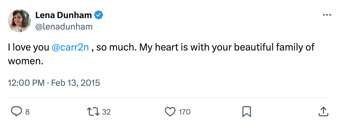 Jackson-Glidden told me she heard from Dunham again after Carr’s death. “Our man is gone,” Dunham told her. “Sweet sweet brilliant DC. He adored you.”