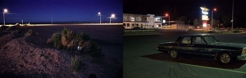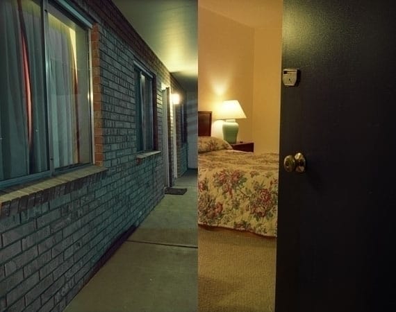 I think the only premeditated thing I did was to take two cameras with me, one with color film for landscapes and one with black & white film for when we got out the car and actually saw other people. As I was shooting I didn’t think about combining images. There were certainly things I made sure to shoot over and over again though, like the motels and rooms. They were all especially strange and curious and a little creepy, made even more so by seeing them first late at night.