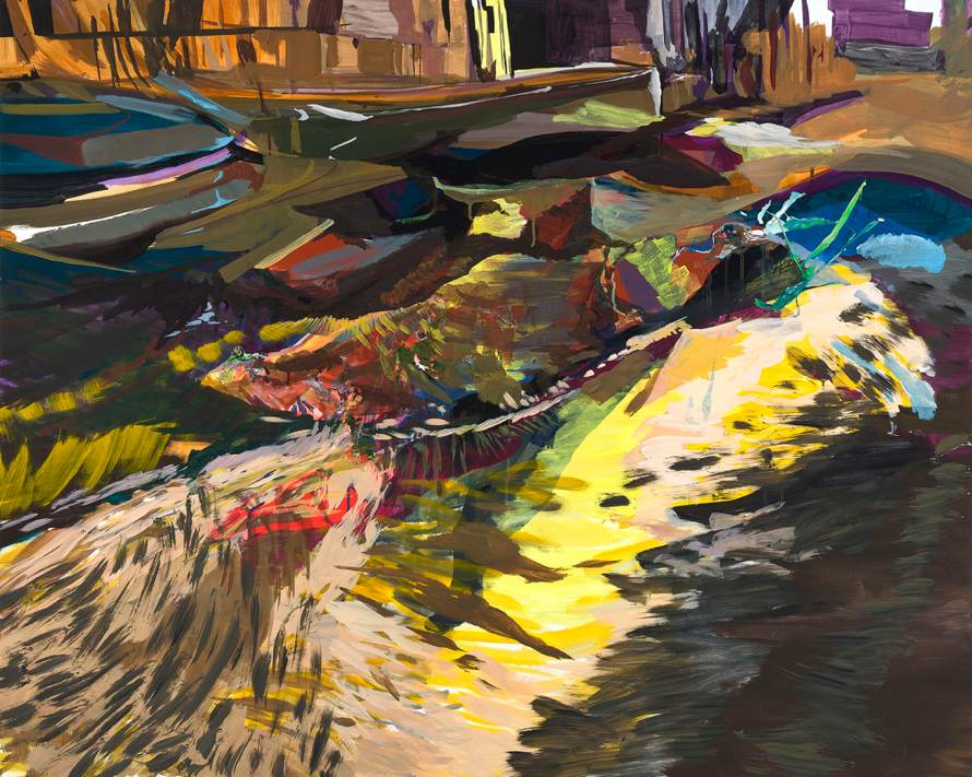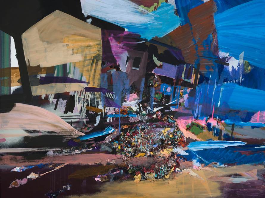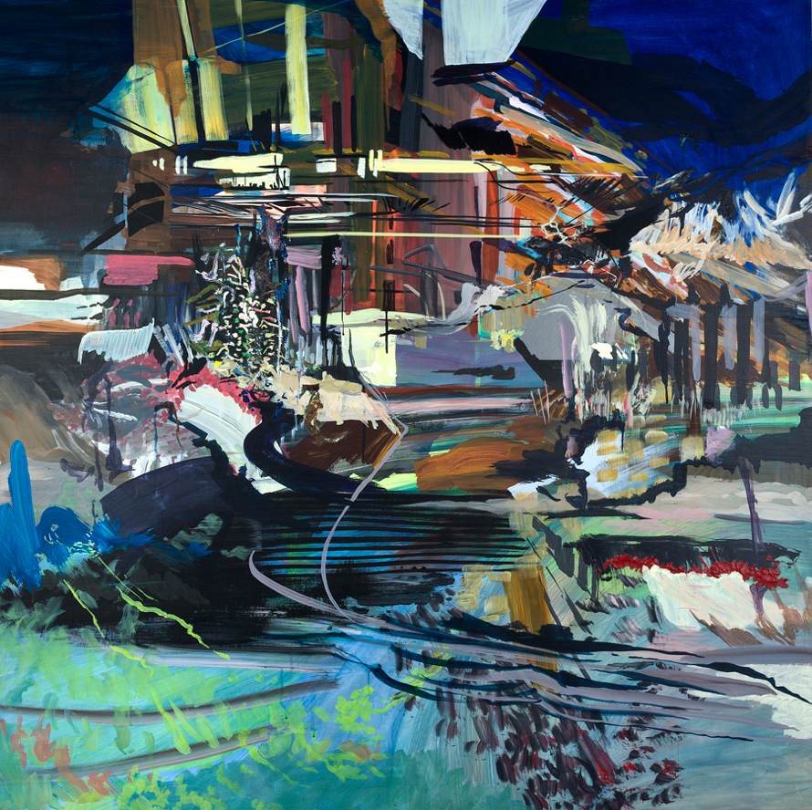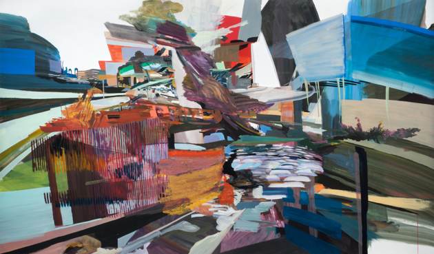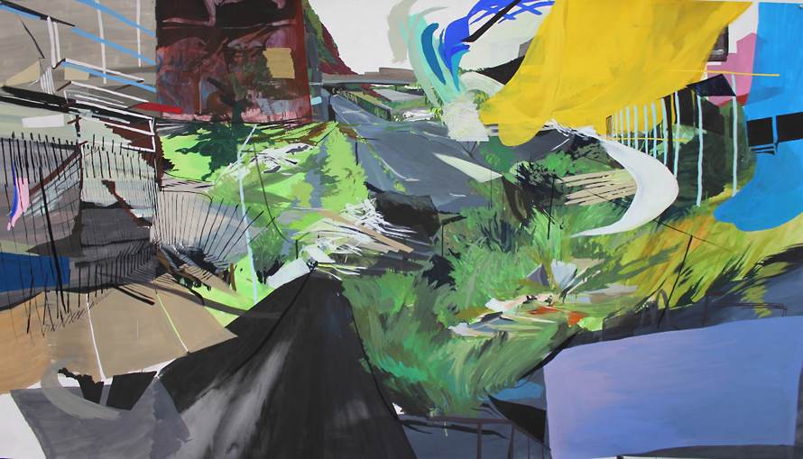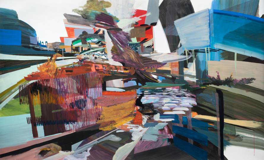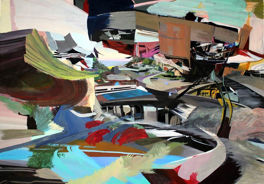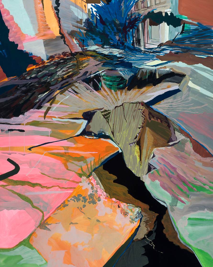 ABB: For me, it’s the colors running together in long swipes from a sponge; small detailed sections which are still not quite possible to understand; the confluence of different perspectives and transparencies; the way that shapes sometimes begin to suggest buildings and then dissolve into a blur.