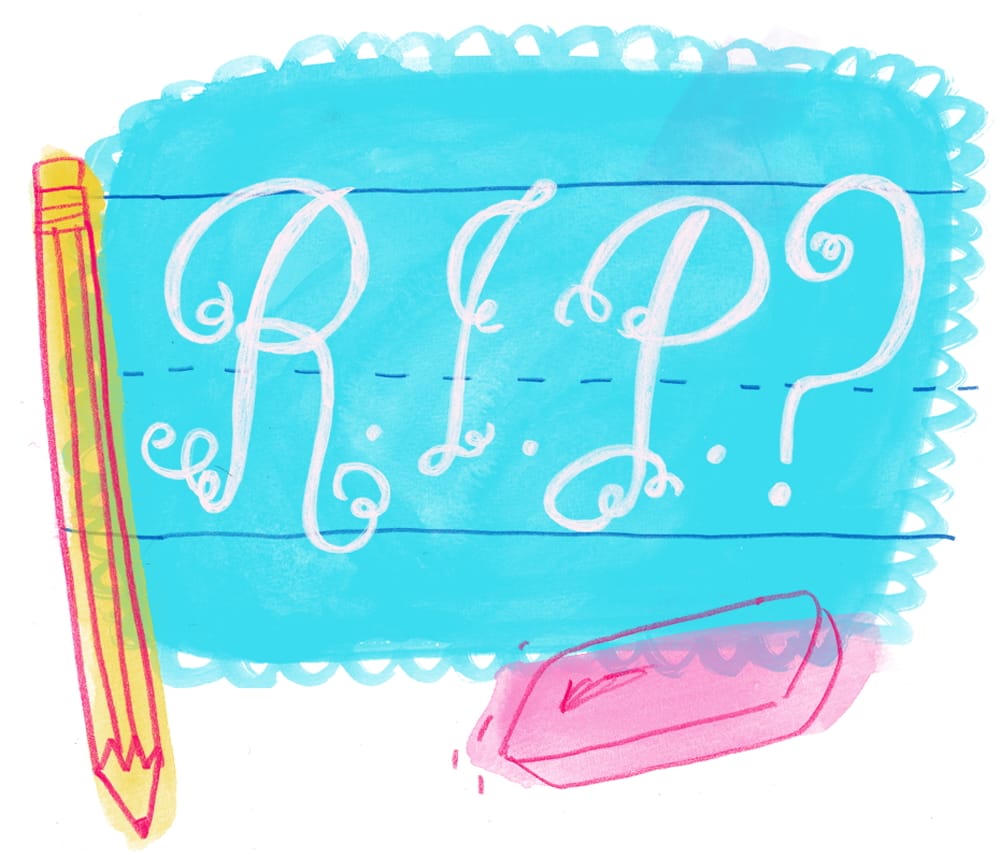 No matter how hard I tried, I was incapable of making my hand shape those precious loops. Despite extra classes, a school-appointed therapist, even mortifying, neon-colored rubber grips that fit like erasers over the shaft of my pencil and forced my fingers into a perfect penmanship claw, everything I put down in cursive was not just inelegant and wobbly but also completely illegible. A symptom of some disease. A signifier of a horrible shortcoming that would show itself days or weeks or years later. Eventually, someday, I’d kill, I’d steal, I’d use swear words like my brother’s friend Walter. My future failure was written in my writing. And so if cursive did matter, well, I was in for a life of trouble, so cursive couldn’t matter.