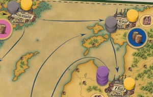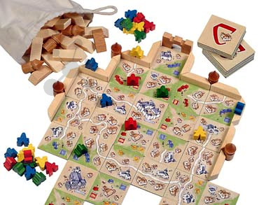 Hire builders from around Arabia to construct a palace of unparalleled splendor. But as anyone who has tried to keep up with the Joneses knows, it’s not enough to just have manors, gardens, and pavilions—you need to have more manors, gardens, and pavilions than your neighbor. Alhambra received last year’s “German Game of the Year” award (a big deal, as I mentioned above), but was omitted from the 2003 G3 Guide because it wasn’t yet available in the U.S. Now that Uberplay offers an English version, it earns a high spot on this year’s list proper.