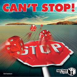 Roll four dice and group them into scoring combinations. Every time you succeed, you advance your markers on the board and are given the opportunity to roll again. You can call it quits at any time and “bank” your progress, but a roll that produces no combinations voids everything you earned during the turn. That’s Can’t Stop, a game that has long been considered amongst the best of the “push-your-luck” breed. And yet, despite selling well upon its release in 1980, Can’t Stop was inexplicably out of print in the U.S. for some 20 years. Three cheers for Face 2 Face Games, which has finally reprinted this classic. Snap up a copy before it disappears for another generation. (more info)