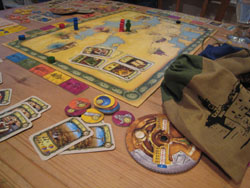 Thebes is a smidge weightier than the other games on this list, but worth the extra effort to learn. Players divide their time between Europe, where they conduct research and listen for rumors of fabled riches, and the Mediterranean, where they excavate archeological sites in search of treasure. In a novel twist, time is literally money in Thebes: Each player is given 52 weeks at the start of a year-long round, and must decide how to best spend them amongst study, travel, digging up artifacts, and putting on exhibits. Ironic, that a game stressing the importance of doing your homework could be such a blast. Goes great with a fedora and the Raiders of the Lost Ark soundtrack. (more info)
