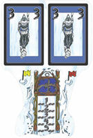 Racing games are often among the best choices for families, as even the youngest of children can intuitively grasp the goal of play. Snow Tails has the added advantage of a novel theme (dog sledding), neat mechanics, and a modular racetrack you can customize before every game. On a turn, play a number card to one of your two Huskies. If both dogs are going the same speed, the sled goes straight; but if one dog outpaces the other, the vehicle skids—and is perhaps damaged in the process. Plus, the icy trappings make it the perfect game to pull off the shelf when the snow starts a-fallin’. (More info)