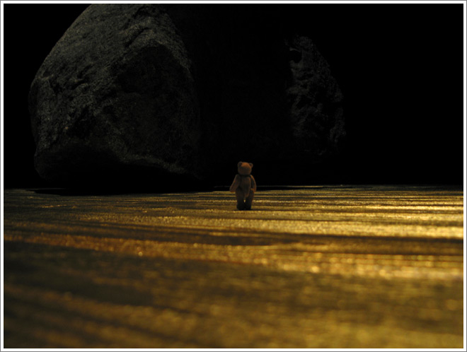 I had started taking pictures of the little bear when in Death Valley a few years ago, at the lowest point of the western hemisphere. Nature was just so overwhelming there and so impossible to photograph that the bear became a bit of a helper to access that feeling of being incredibly tiny in a gigantic, beautiful yet overwhelming place.